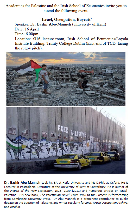 Academics for Palestine and the Irish School of Ecumenics invite you to attend the following event: